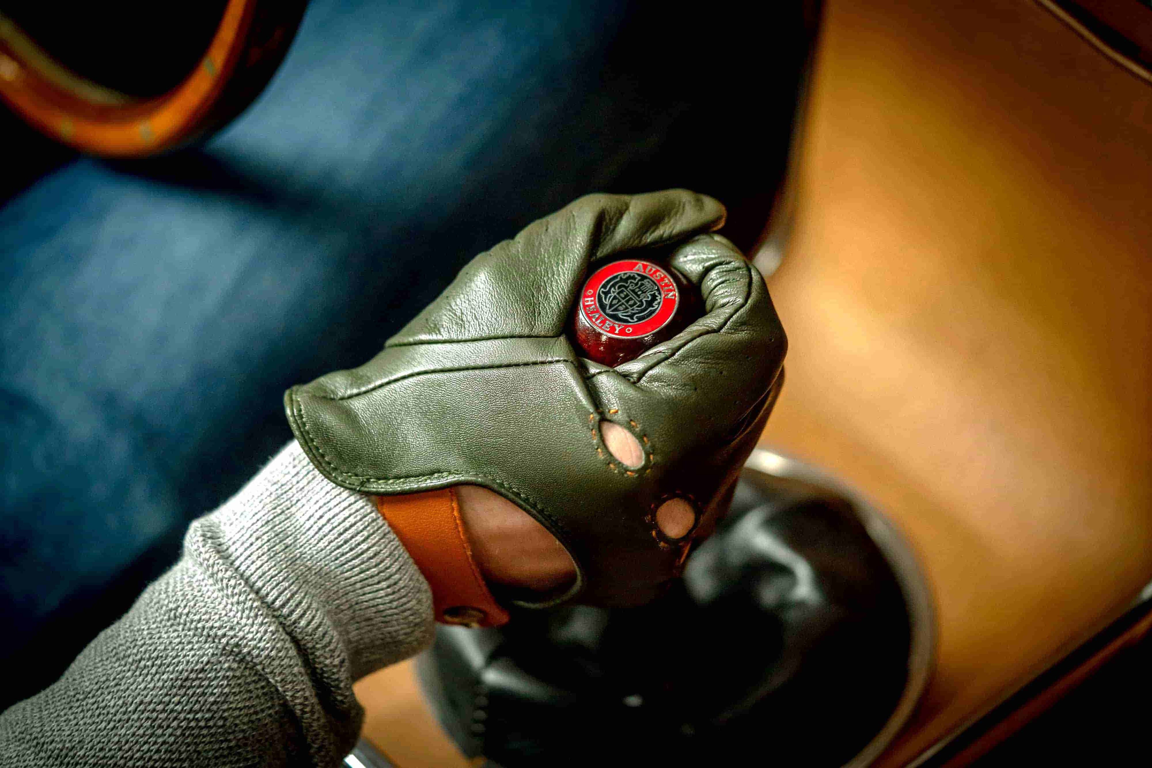 The details on our classic leather gloves are a tribute to the best historical automotive designs. The red, white and blue stripes are a tribute to the stunning racing colors used on those vintage racing cars from the 70's. Our logo on the pushbutton is an inspiration by the legendary classic Fuchs wheel by Porsche.